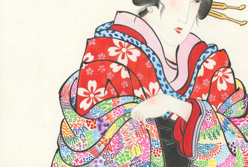 Also, most ukiyo-e artists are men, so I wanted to draw things that only women can draw